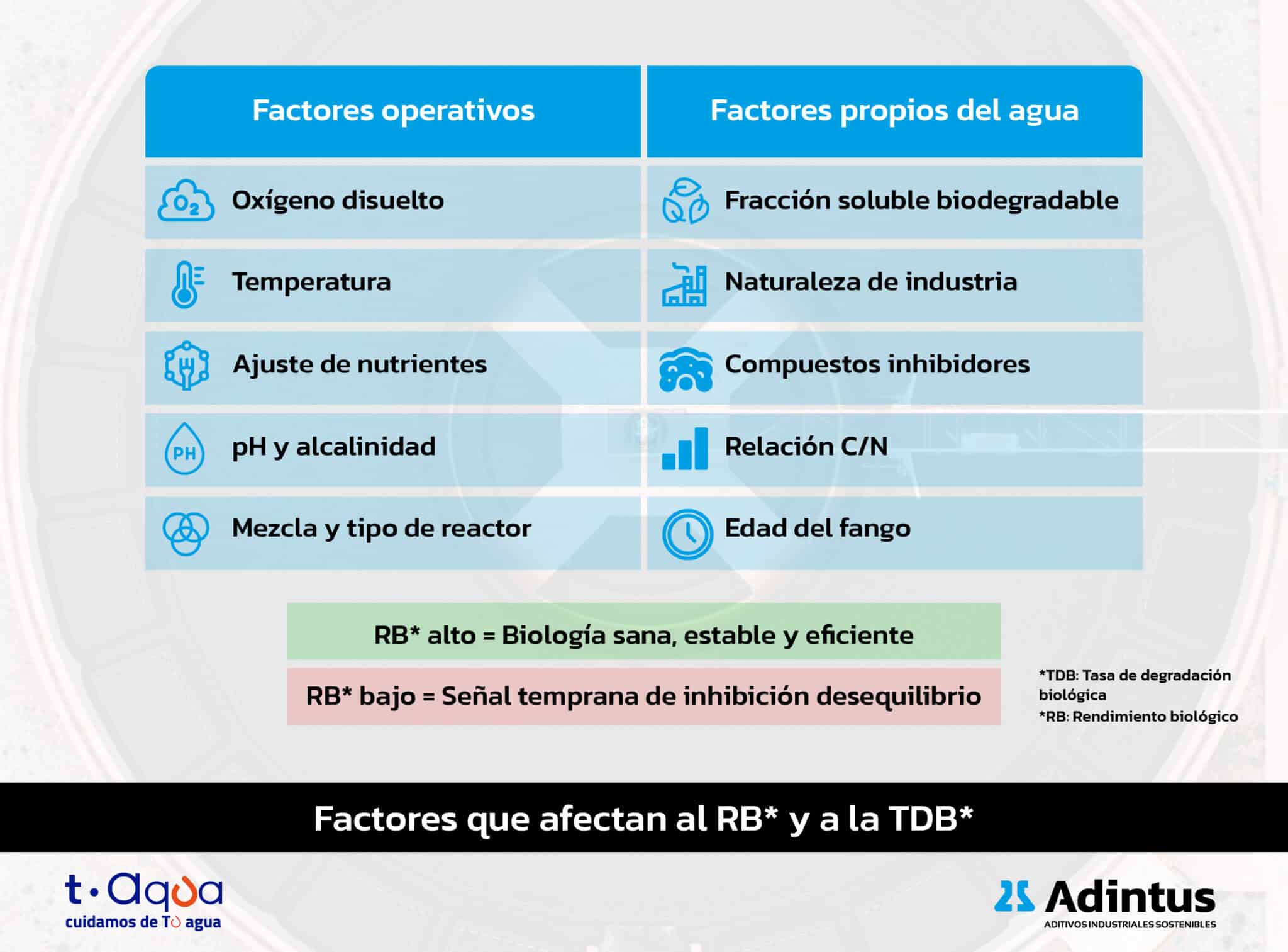 Le TDB est la vitesse à laquelle la biomasse consomme et élimine la matière organique soluble biodégradable dans le réacteur biologique.